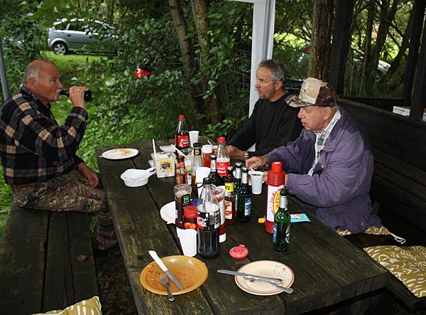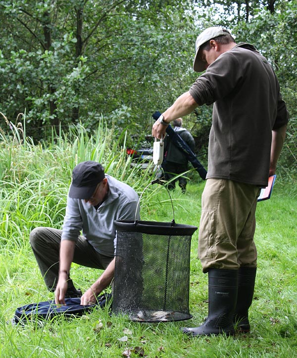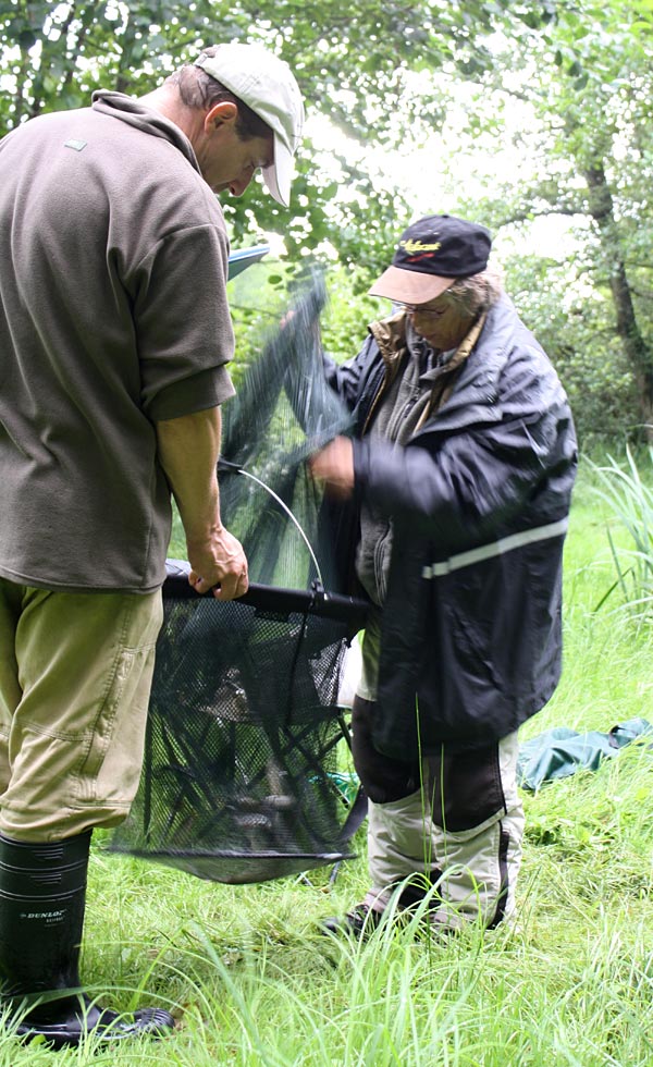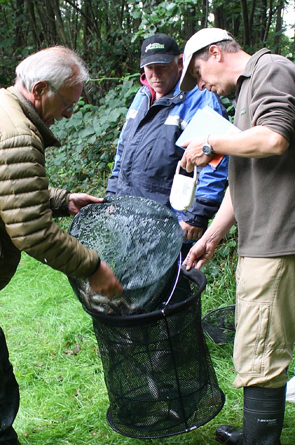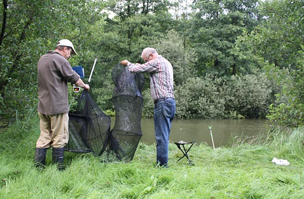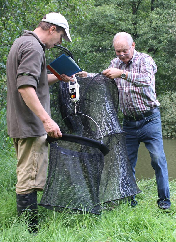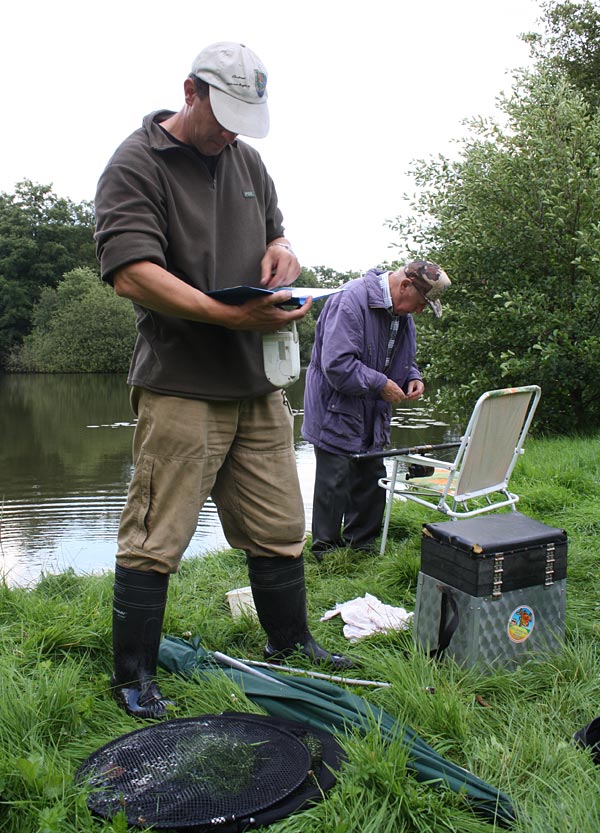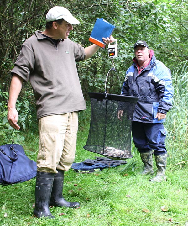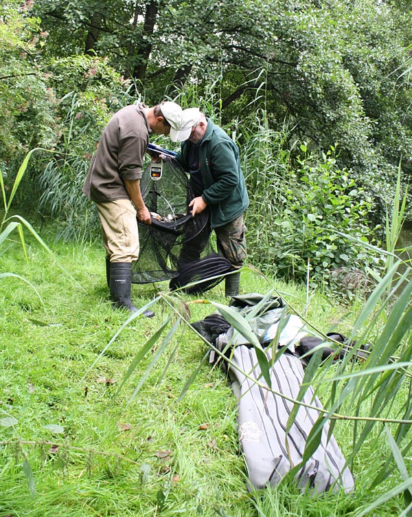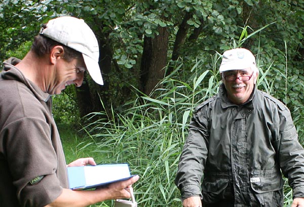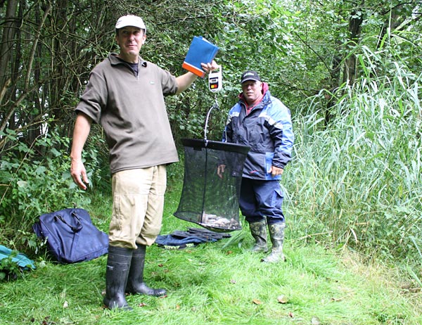 Andreas notiert das Fangergebnis, Bubi packt scvhon mal ein.