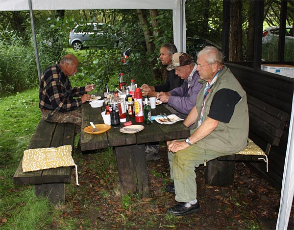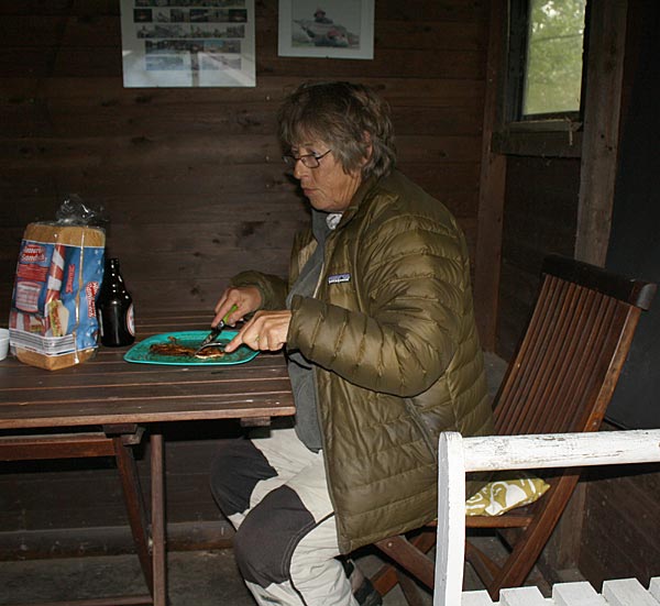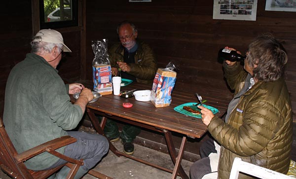 Auch in der Hütte kann man giut essen - vor allem gibt es keinen nassen Hintern!