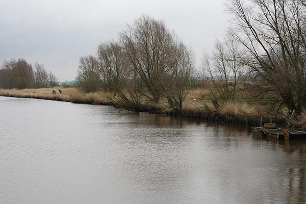 Das Schilf vom letzten Jahr, die Bäume und das am Straßenrand aufgeschichtete Reit boten wenigstens etwas Windschutz.