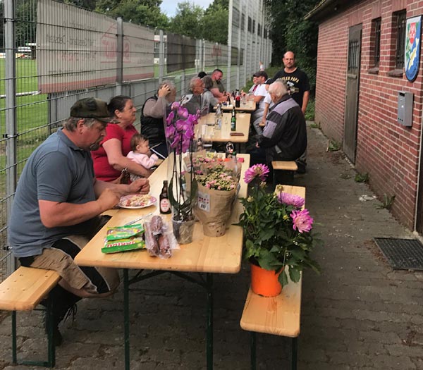 9 Familien nahmen teil. Insgesamt 17 Erwachsene, 3 Kinder und 1 Baby wollten Fische, Kuchen, Bratwurst und Grillfleisch. So ungefähr in dieser Reihenfolge passierte es auch.