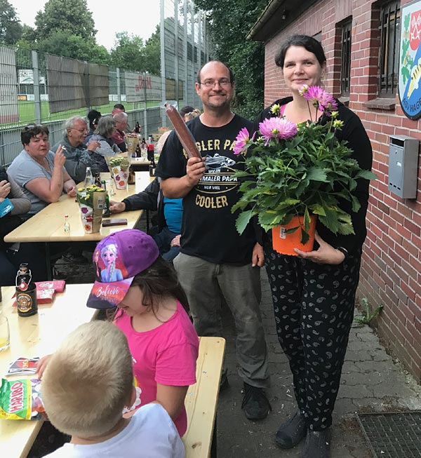 Die Würste und die "großen" Blumen gingen an: die Schönknechts (700g), die Matze Family (620g) und an den Sportwart (420g). Die Verfolger (die Malarczuks und Lichtnows (Junior)) lagen mit jeweils 400g nur knapp dahinter und auch (fast) alle anderen konnten etwas fangen.