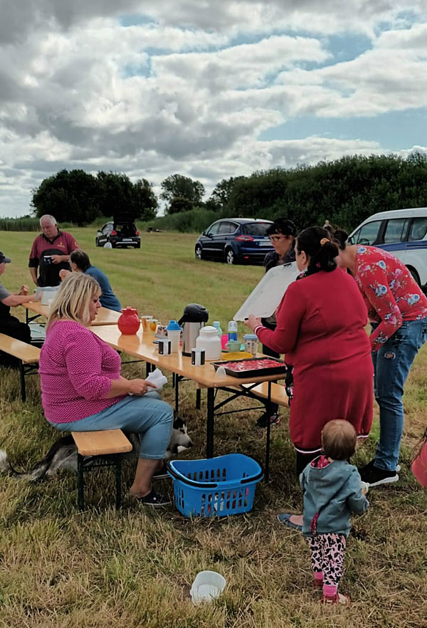 Mettwürsten und dem Spanferkel, das Herrichten der GS, der Transport der Biertischgarnituren