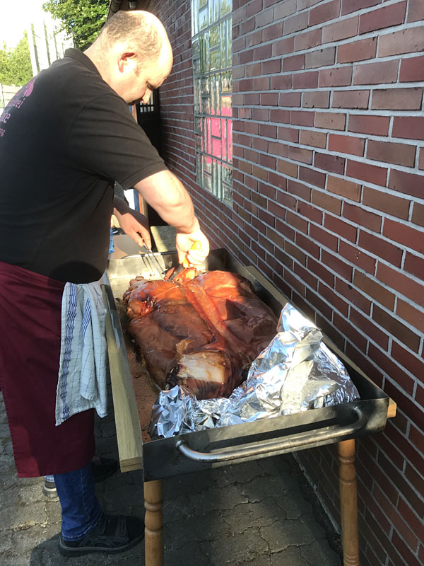 Das Spanferkel kam von Andre Reinke und kam überpünktlich