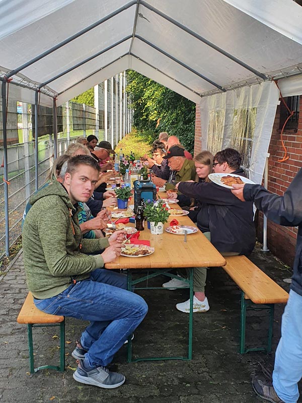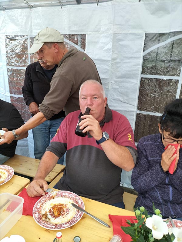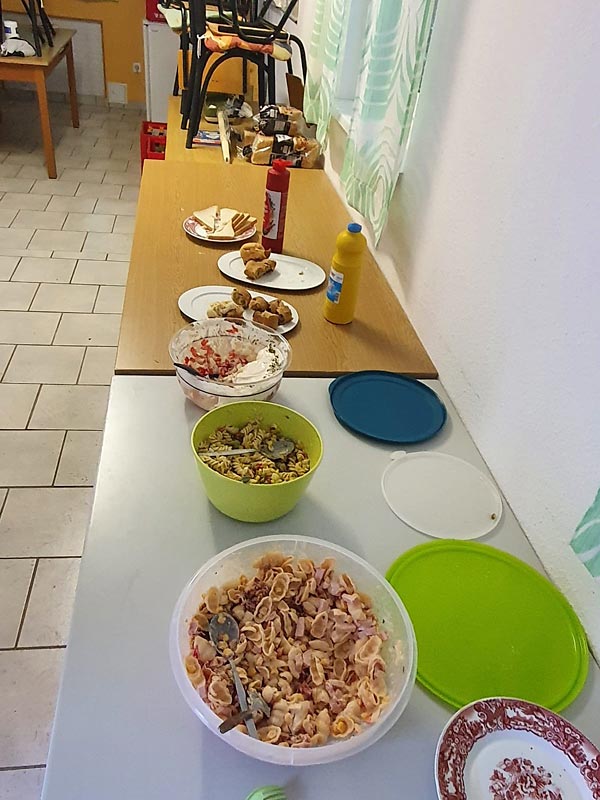 .. Andreas versucht, Gegrilltes zu verteilen, aber irgendwann passt nichts mehr rein.