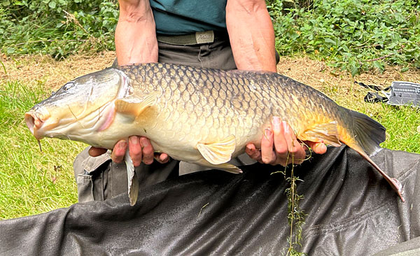 7. April; .. Tom David mit einem Spiegelkarpfen ..