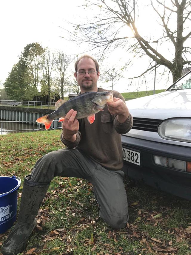 Schnell zeigte sich, dass es ein Barschtag werden sollte: Andreas hatte am Siel schon nach 10 Minuten den ersten 100g Barsch verhaftet.