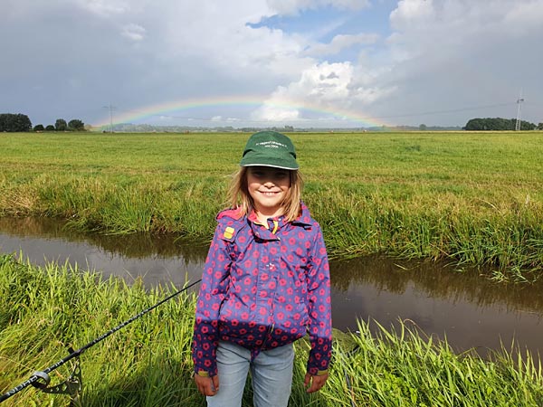 Und da bleiben andere wegen des Wetters zu Hause: unsere Jüngste im Verein, Juna, strahlt mit dem Regenbogen um die Wette!