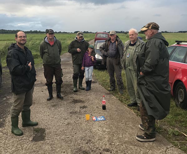 Mit entsprechendem Abstand gab es nicht nur die Ergebnisse des Angelns, sondern auch ein kühles Getränk. Viel Zeit zum Klönen blieb uns aber nicht, denn der nächste Schauer rauschte pünktlich zum Ende des Angelns an.