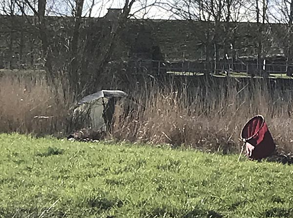 Ronald war so dick angezogen, dass er Schatten brauchte....aber im Enst: der Wind war eisig; da half auf diesem ungeschützten Platz auch die Sonne nichts. Die Plätze auf der anderen Wiese (1-5) waren da aufgrund der Weiden etwas geschützter.