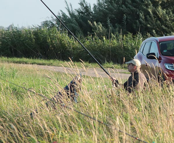 Das Wetter passte. Die große Hitzewelle war vorbei; die Sonne schien. Der Wind war machte das Angeln etwas schwierig. Mehr als einmal fing man einen Grasbüschel am anderen Ufer. Vom Winde verweht.....