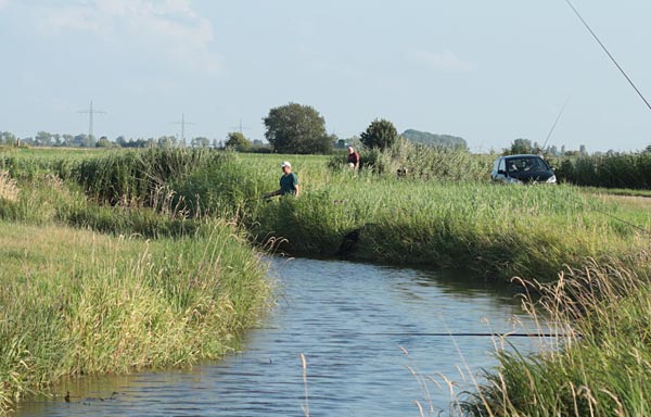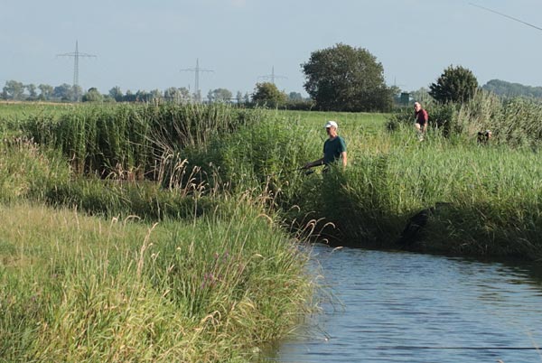 ..ein Blick 'rüber zu drei "Falsch" - Anglern .. ?? .. Man sollte sich schon informieren, wo man angelt...nicht alles, was in die Drepte reinfließt, heißt auch so. Der Peushamsfleth jedenfalls gehört nicht zum ASV Hagen...