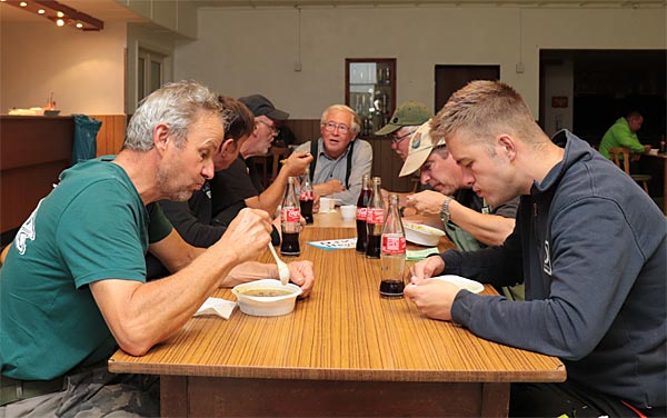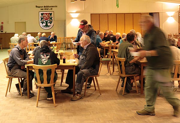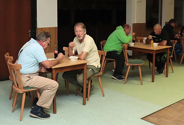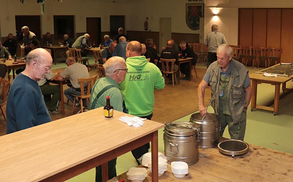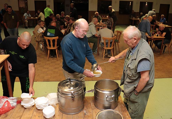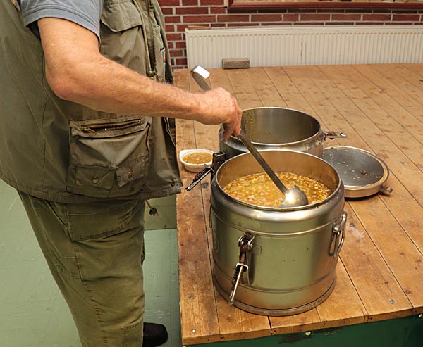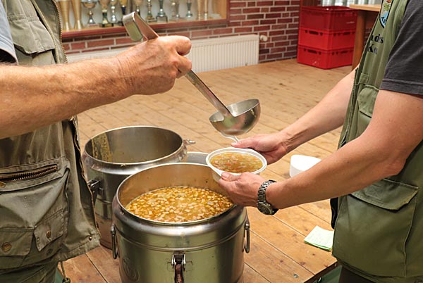 Erstmal eine kräftige Erbsensuppe zur Stärkung! Darauf haben sich viele seit 2 Jahren gefreut. Olaf schwingt wie immer die Suppenkelle!