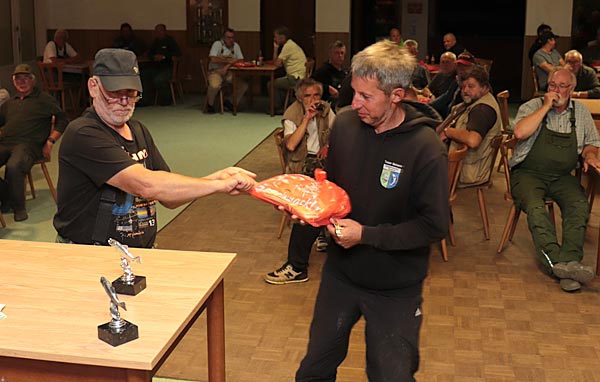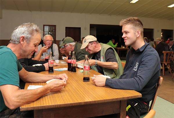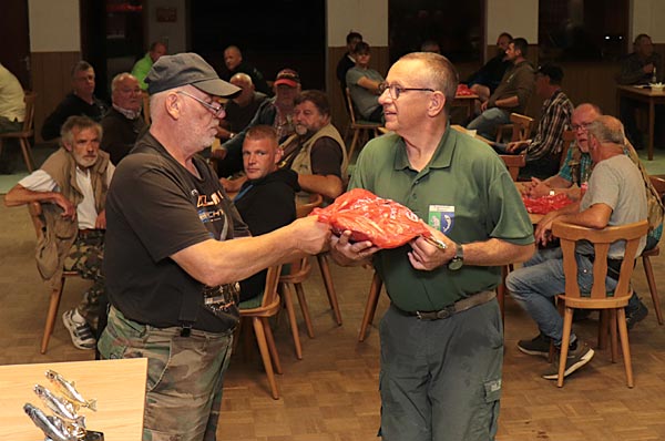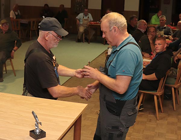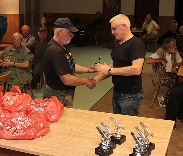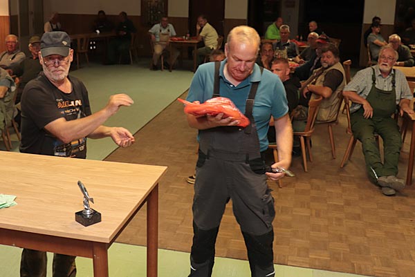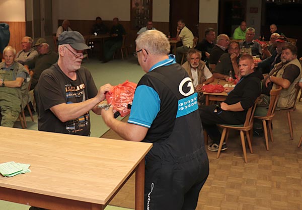 .. Horst, vermutlich (?) der älteste Teilnehmer und nach einem Schlaganfall nicht mehr gut zu Fuß, bekommt die Erinnerung an einen guten Fang natürlich an der Tisch gebracht.