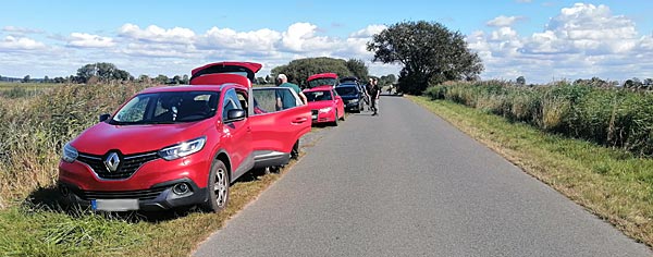 Im September beginnt die Wollhandkrabbe ihre Wanderung; entsprechend aktiv unmd hungrig sind die Tierchen. Auf dem Rückweg wurde sogar eine Wollhandkrabbe zwischen Sandstedt und Rechtenfleth auf der Landstrasse beobachtet. Trotz des tollen Wetters ist es im September daher immer so eine Sache....