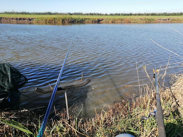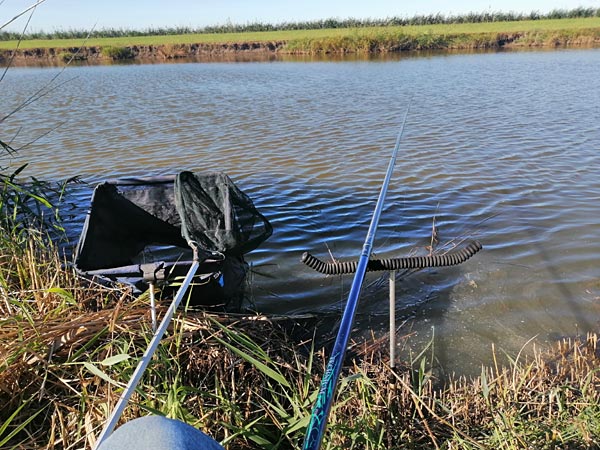 Sehr hoher Wasserstand und milchig-trübes Wasser = nur sehr wenig Bisse :-(. Ob mit den ersten Regenfällen seit langem zu viel Dreckwasser aus den Gräben nachgelaufen ist?