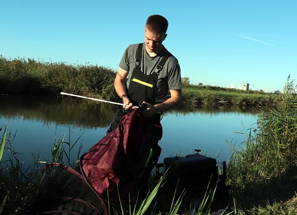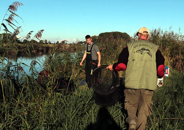 .. Sportwart Andreas sucht in den 350cm Netzmaterial noch die Fische ..