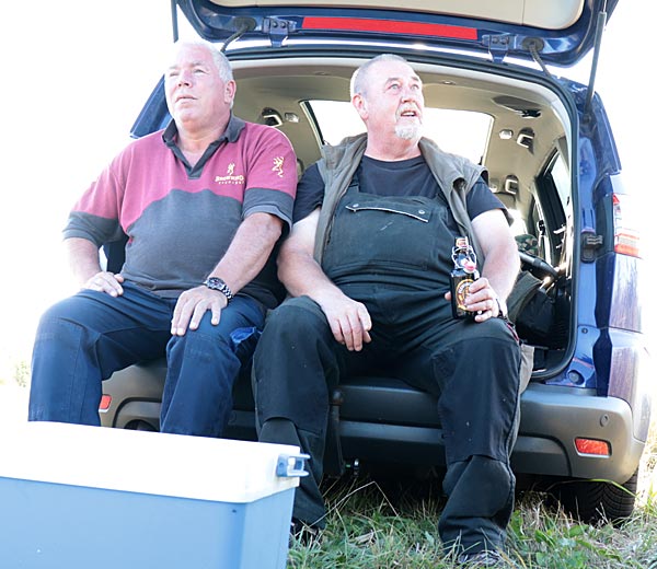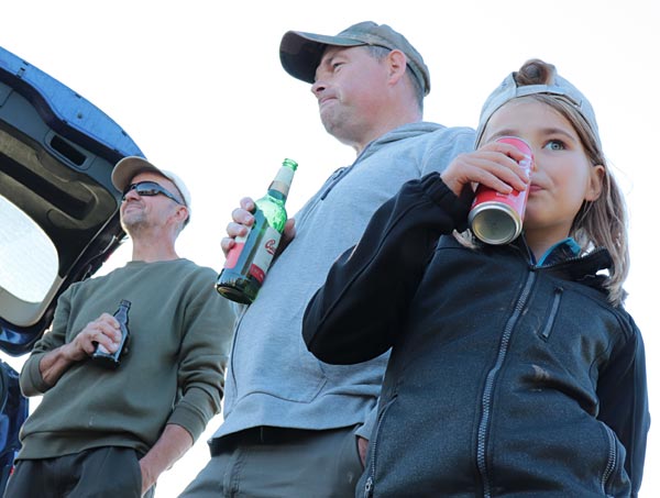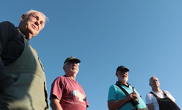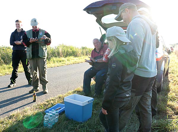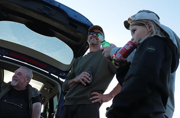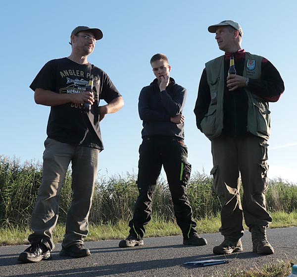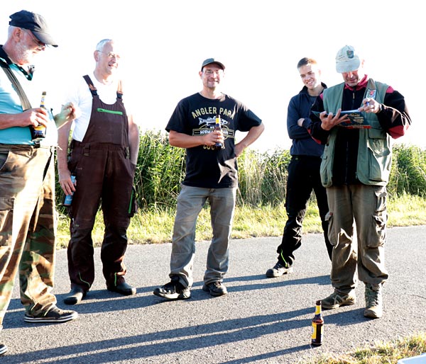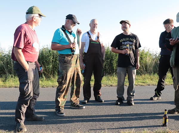 Prost an die beste Anglerin (oben) und die besten Angler des Tages (unten). Matze und Andreas haben am besten gefangen, Nils ist ratlos....
