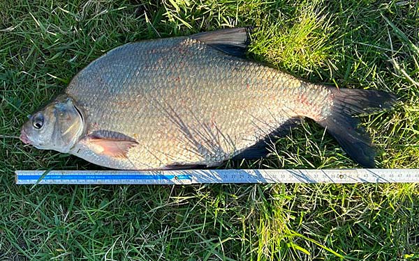 Der Brassen von ulf war etwas kürzer (47cm), dafür aber sehr hochrückig. Er brachte satte 1480g auf die Waage (der Fisch, nicht Ulf)