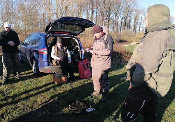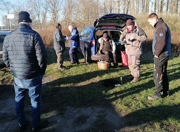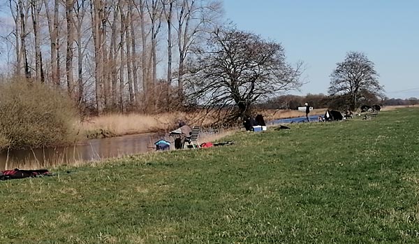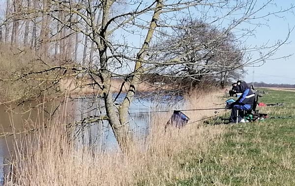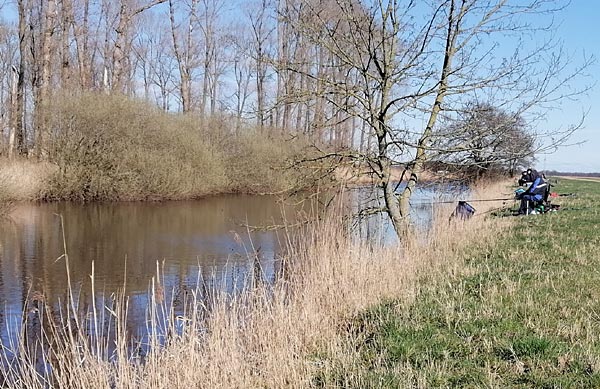Die Sonne lachte die 13 Angler dieses Mal den ganzen Tag an. Der Ost-Nord-Ost war zwar eisig kalt und der Nachfrost machte die Fische etwas "zurückhaltend", aber zumindest auf den vorderen Plätzen mit dem Wald als Windschutz kamen erste Frühlingsgefühle auf....