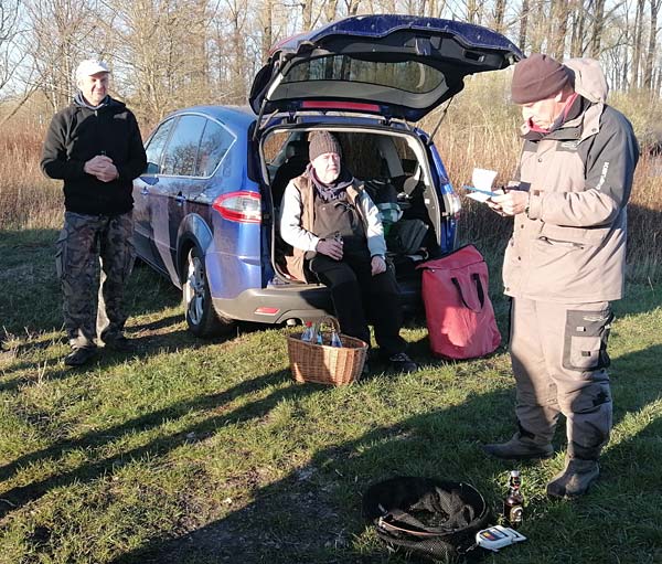Andreas sortiert noch die Fänge; Olaf hatte gar nicht mitgeangelt, kam aber trotzdem noch vorbei.