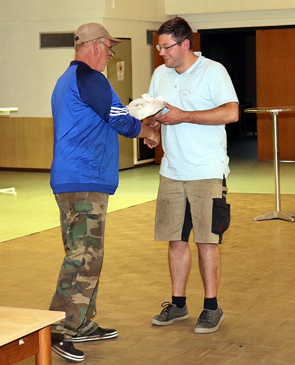 Sportwart Andreas hat sich zurückgehalten und bekommt als vierter sein Grillfleisch.