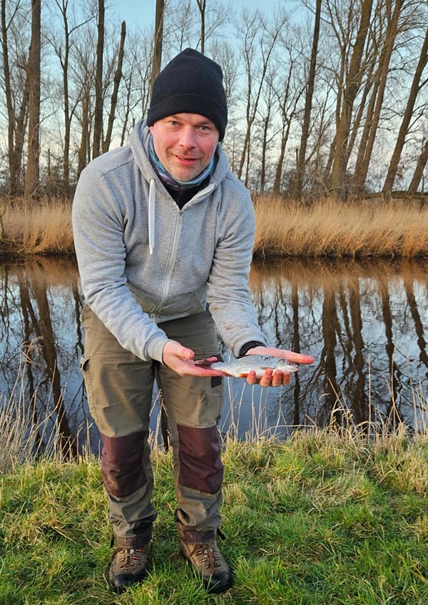 Viel los am Wasser. Im Wasser lief es für Februar ganz gut. Die ersten Fische, wenn auch nur kleine, kamen schnell.