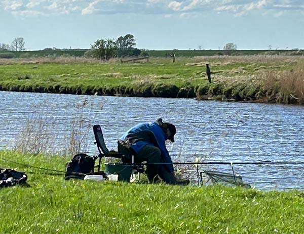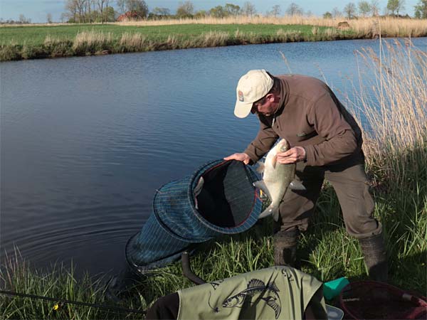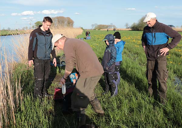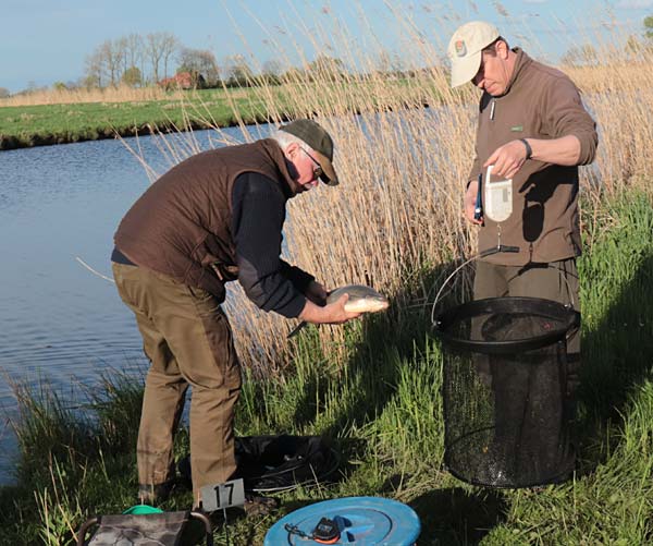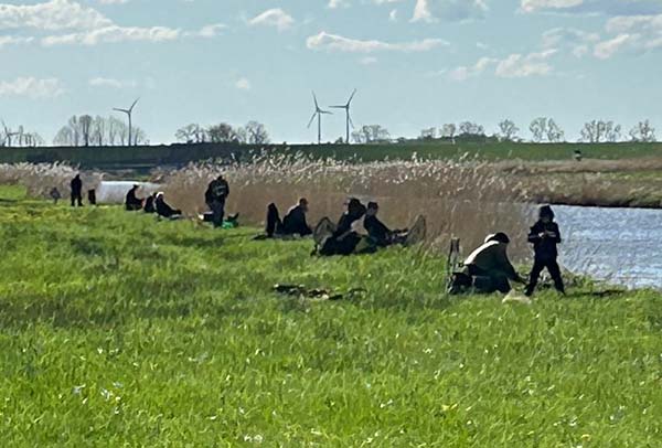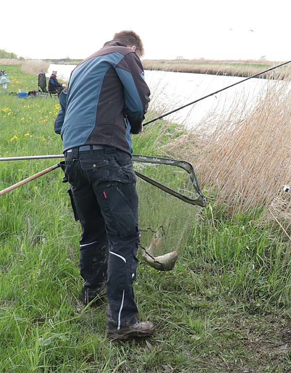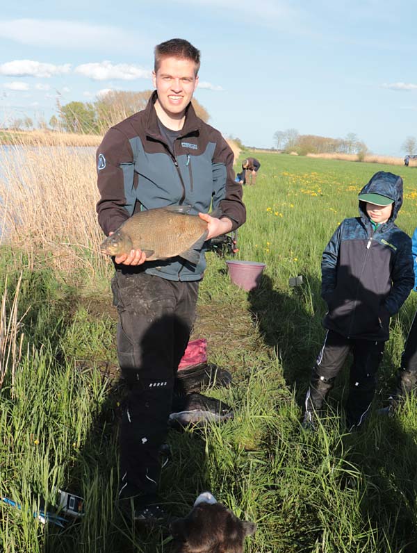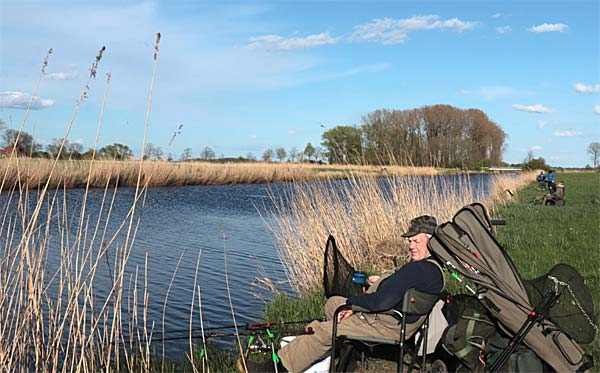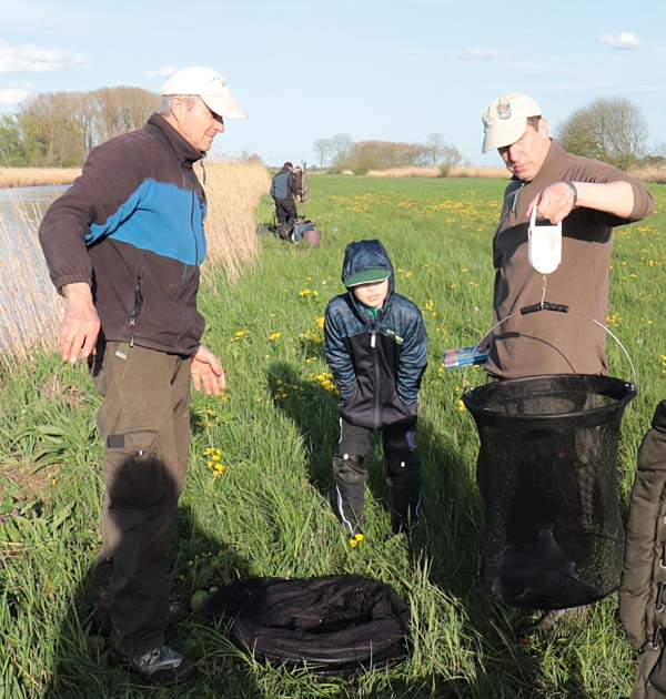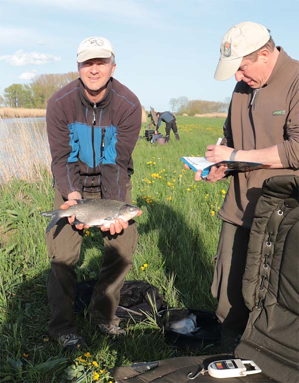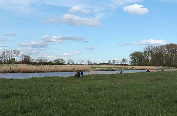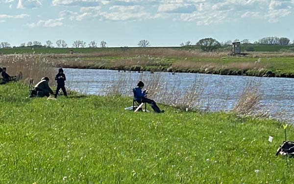 Wer an den Pfählen sitzen durfte, hatte auch mit etwas Wasser um die Füße zu kämpfen. Hier war die Wiese deutlich feuchter als auf dem Rest der Strecke. Aber wenn dafür die Brassen da sind…