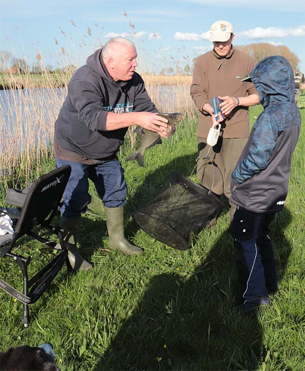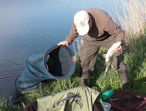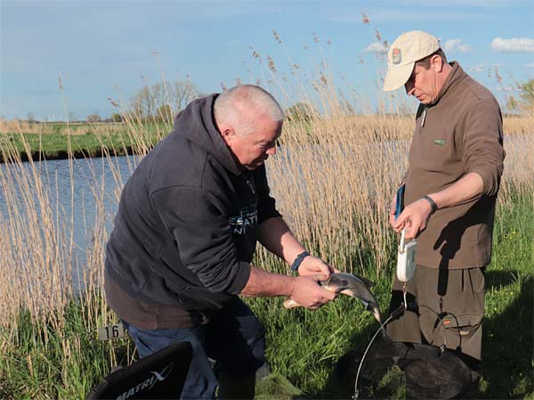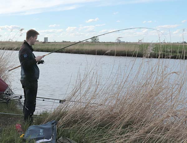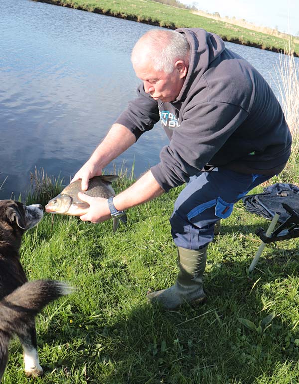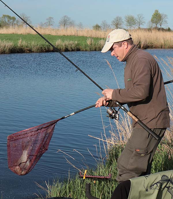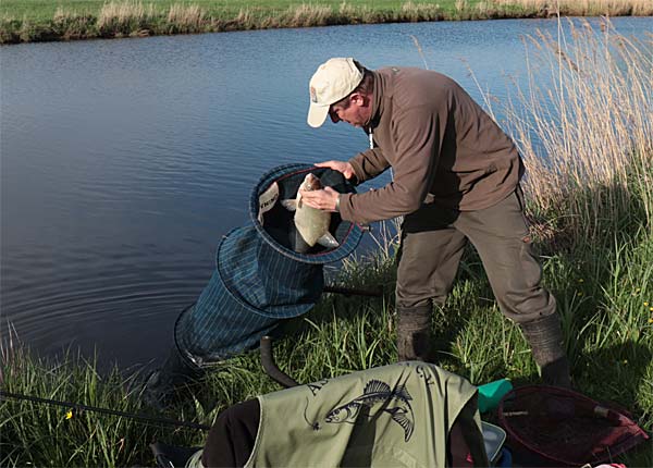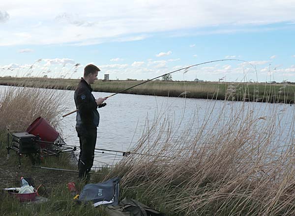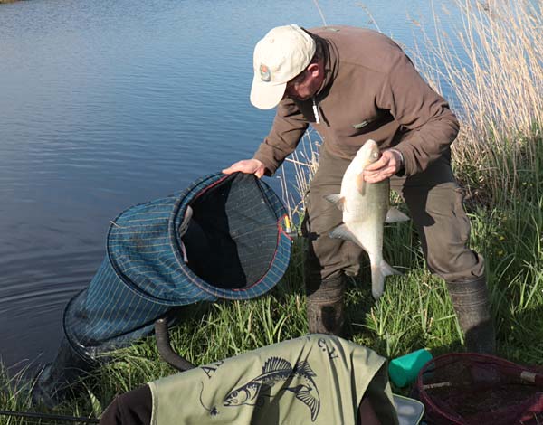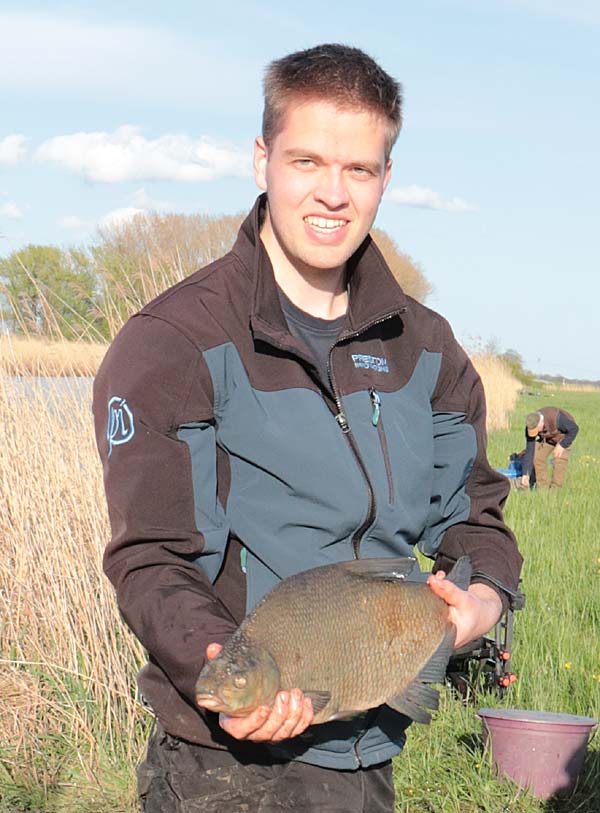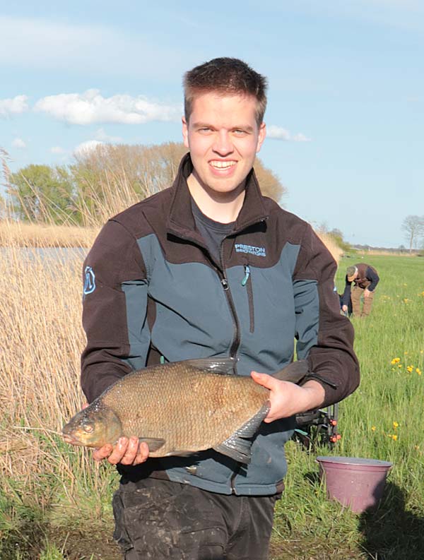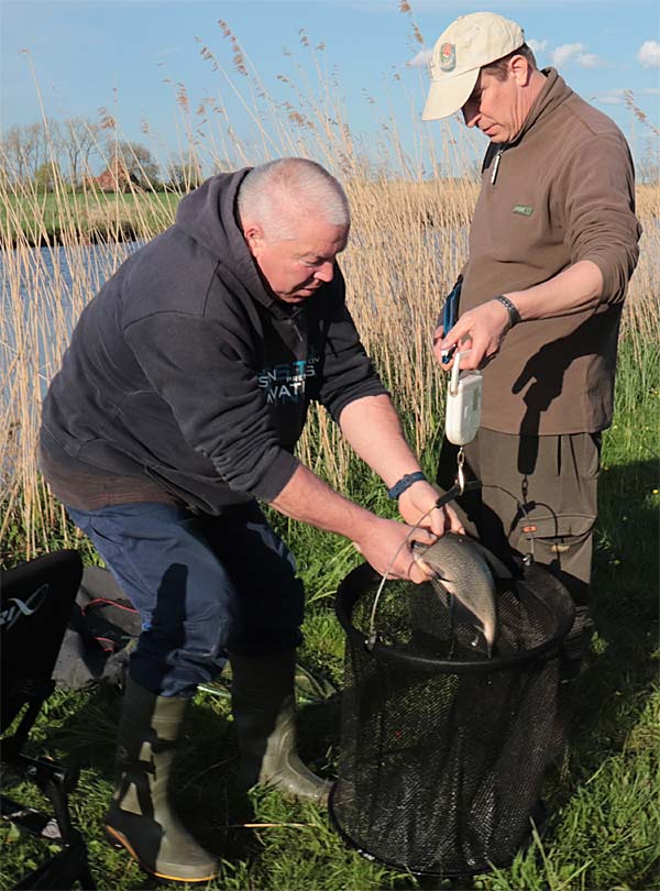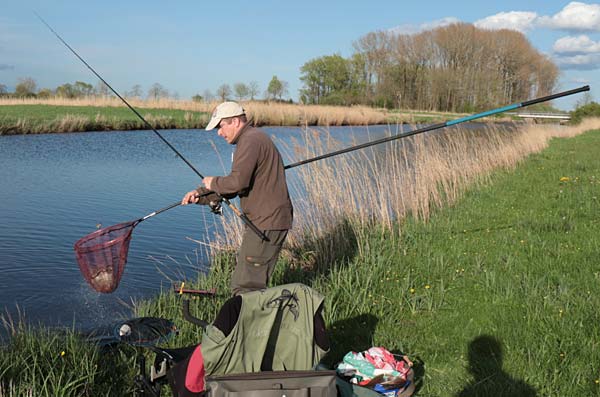 Jürgen einen Platz vorher hat gerade Fangglück. Wieder ein dicker Brassen.