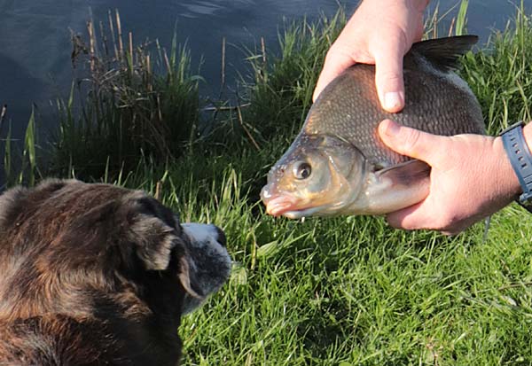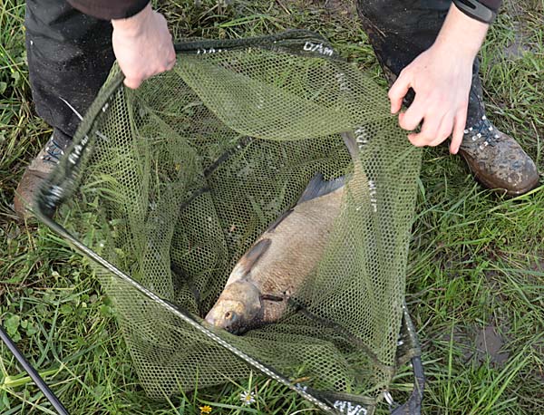 Huch! Auf dem letzten Drücker kommt noch ein dicker Brassen ins Netz.