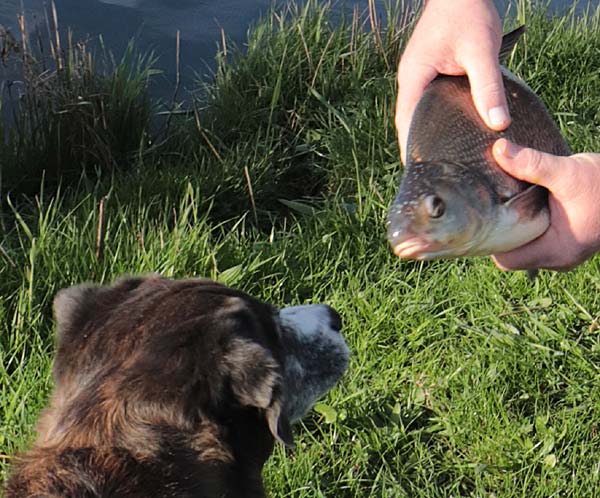 Rocco hätte gerne so einen Fisch zum Spielen. Am liebsten im Wasser.