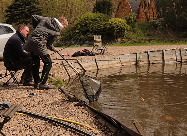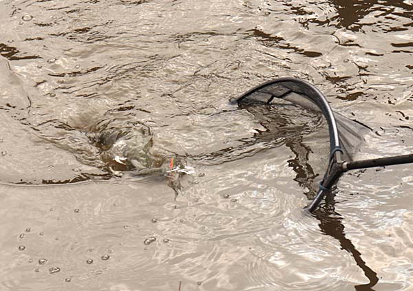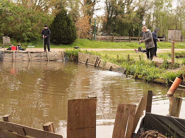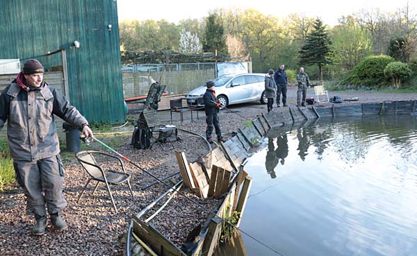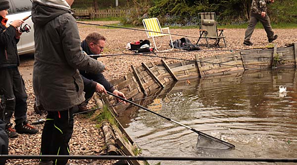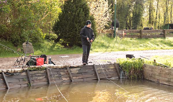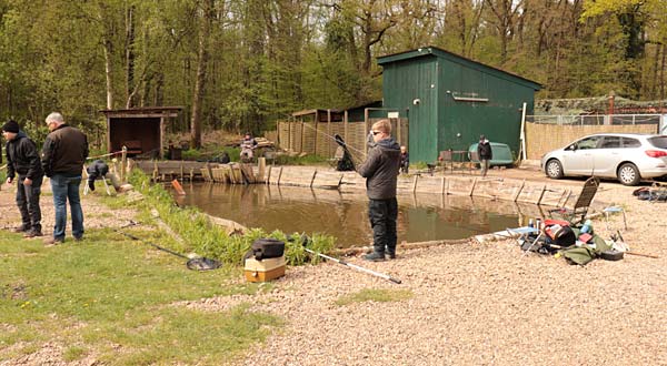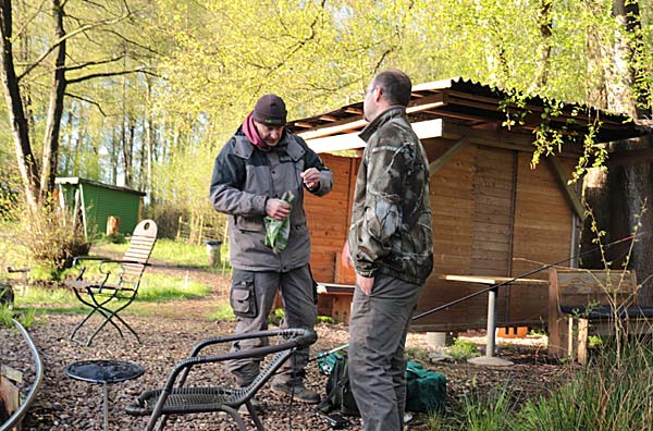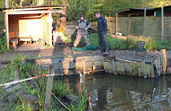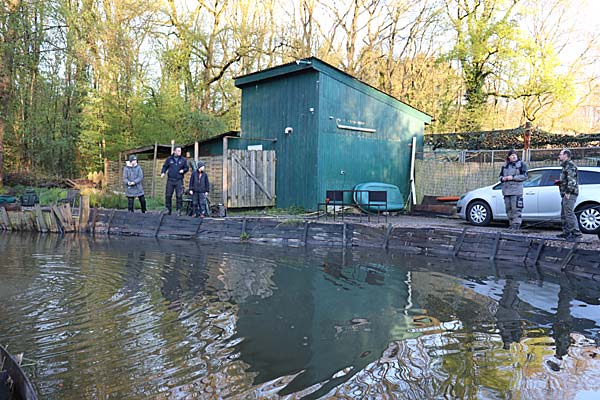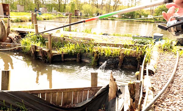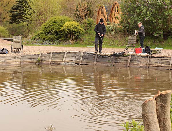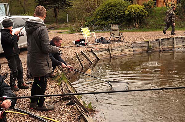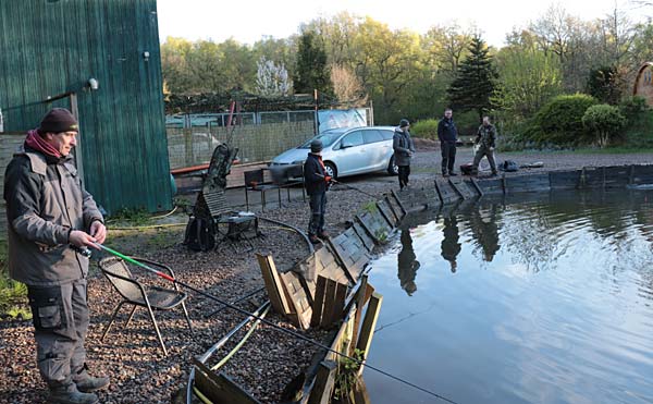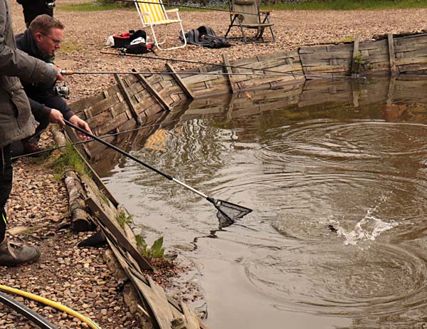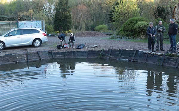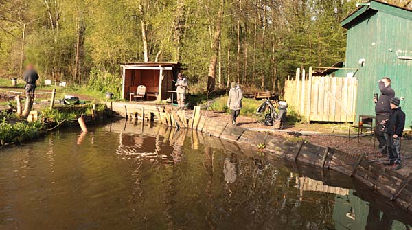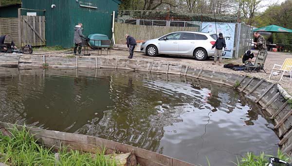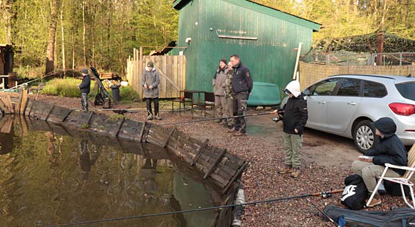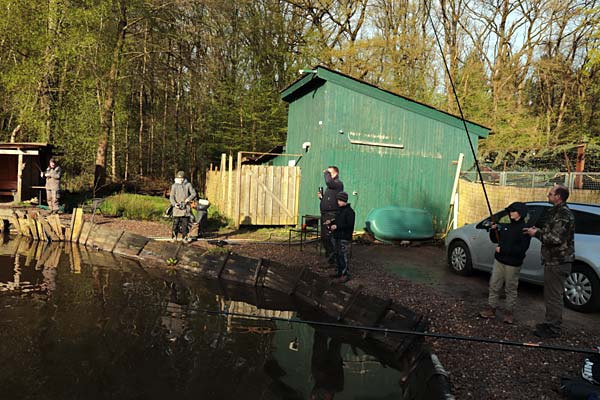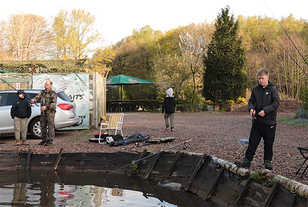 Jugendwart Matze hatte Teich 5, den kleinsten in der Garlstedter Fischzucht, reserviert. Wir wurden freundlich empfangen - nicht nur von den Besitzern der Anlage, sondern auch von den Fischen. Schon in der 1 Minute wurde der erste Fisch gelandet.