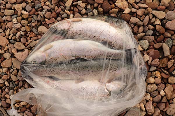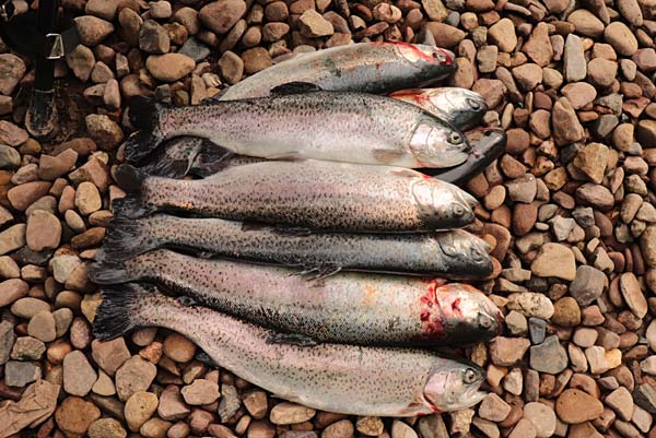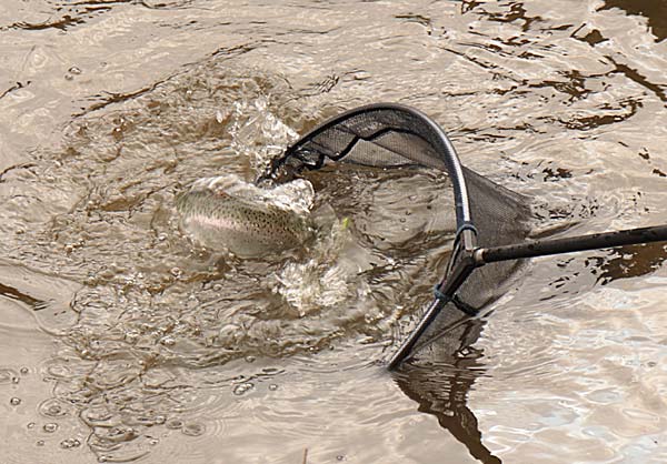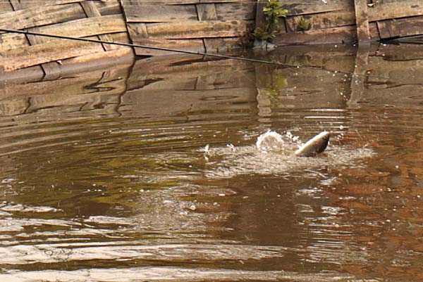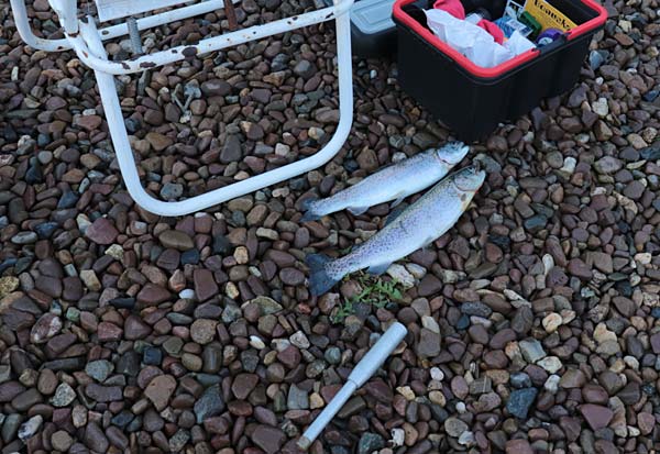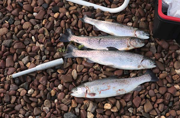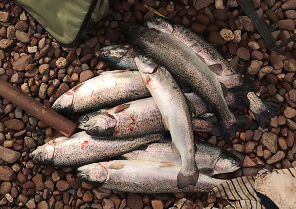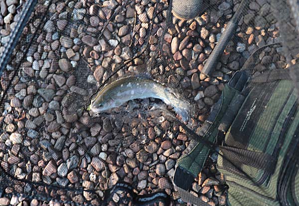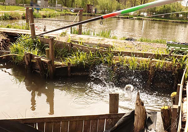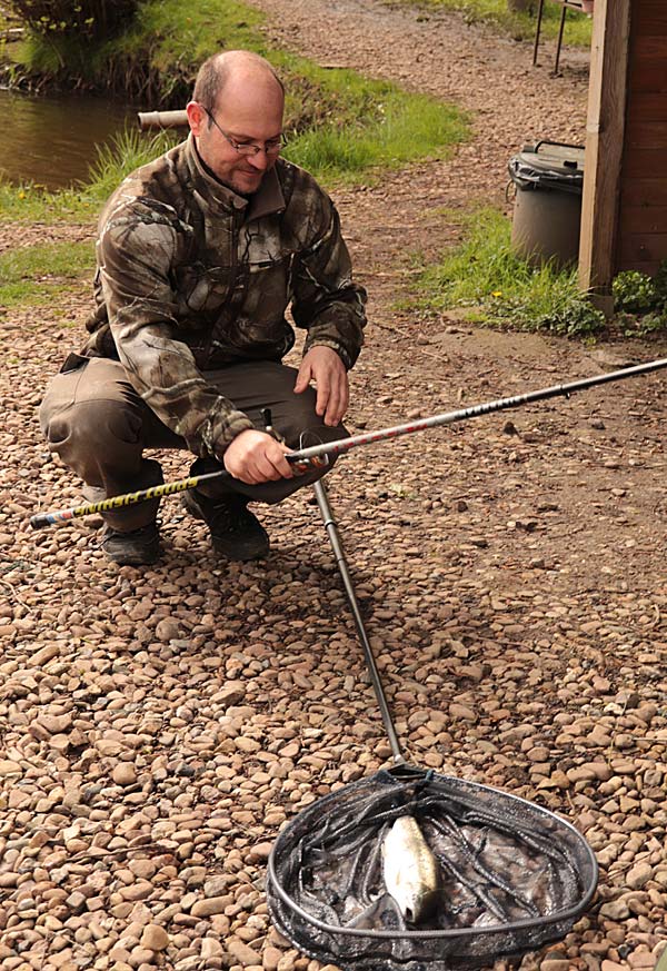 Durch Nutzung von Quellwasser sind die Fische nicht nur fitter, sondern beißen scheinbar auch besser. Es geht jedenfalls Schlag auf Schlag: hier auf den Kopf der Forelle. Denn das waidgerechte Töten gehört nunmal auch dazu.
