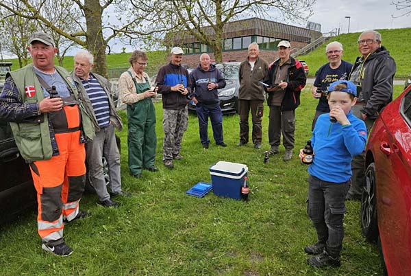 Auch bei Ulf war die Freude groß, obwohl 2 seiner Fische auf das Konto von Uwe und Andreas gingen: ein kurzer Ausflug zum Auto, mal eben was zum Essen holen…. Prompt waren beide Ruten krumm und die Platznachbarn mussten aushelfen.