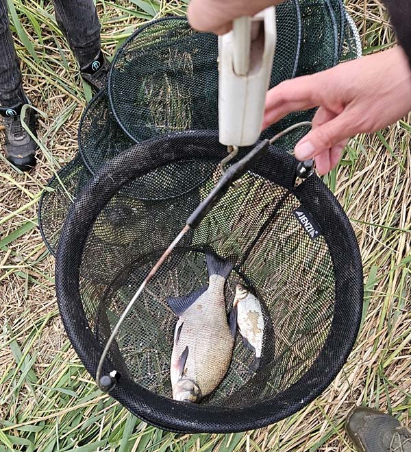 Mit Brassen im Arm guckt Uwe schon wieder freundlicher. Auch er hatte gut gefangen.