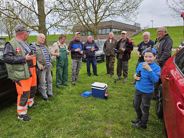 Dunkle Wolken ließen nichts Gutes erahnen. Allerdings: bei Ankunft der 10 Erwachsenen und 1 Jugendlichen waren überall Brassen zu beobachten. Die Hoffnung auf einen guten Fang stieg!