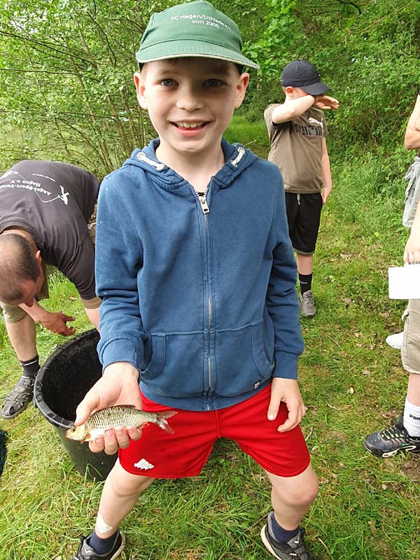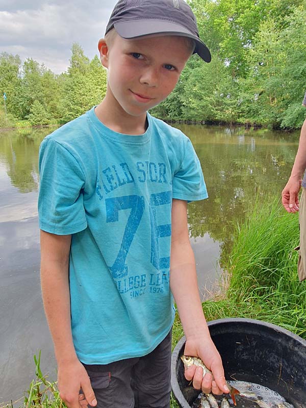 Thore hat sich auch ohne Papa Kim gut geschlagen. Er hatte auch 26 Fische, aber sein größter Fisch war mit 16cm etwas kleiner als der von Jonte (19cm).