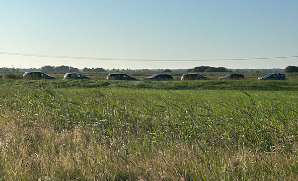 Anzahl Autos = Anzahl Teilnehmer. Leider keine Jugend dabei. Es waren übrigens 8 Angler, da sich ein Auto ganz links am Deich versteckt.
