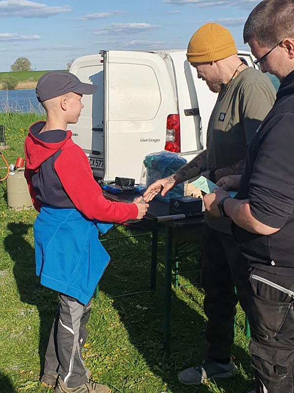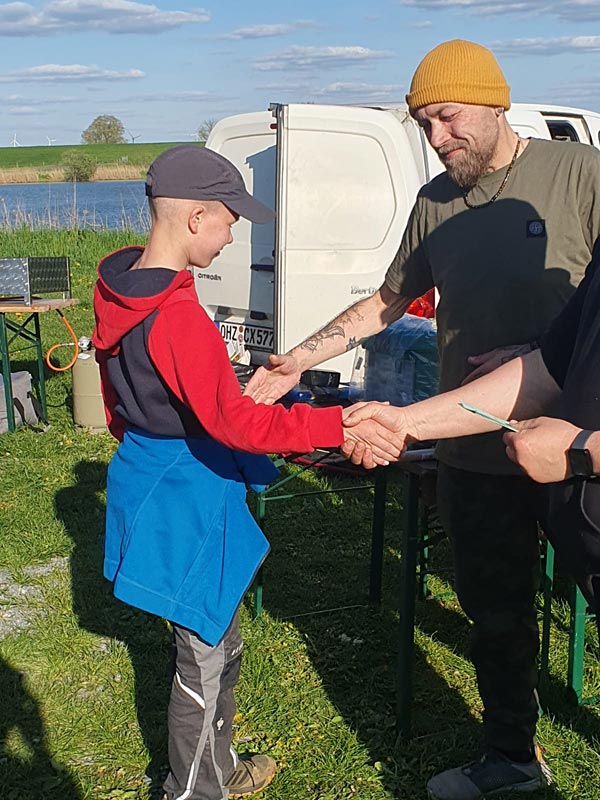 Stefan (Jugendwart Uthlede) bei der Ehrung des Brassen-Fängers!