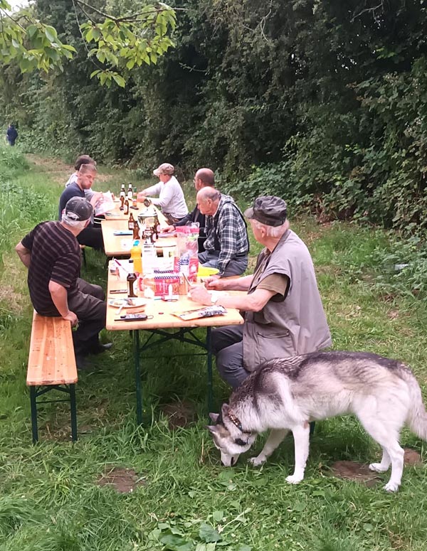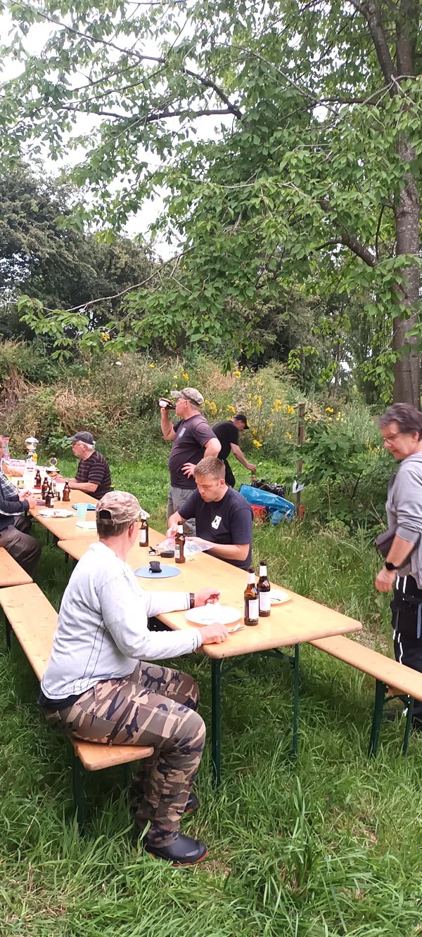 Die Beteiligung war super. 20 Erwachsene, 3 Jugendliche. Bevor es so richtig ans Angeln geht, wird aber erstmal ordentlich gegrillt.