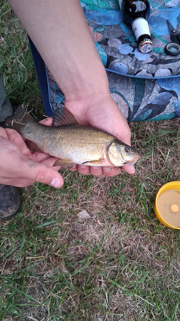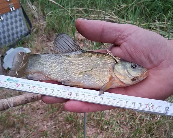 Der erste Fisch: eine kleine Schleie bei Marcus.