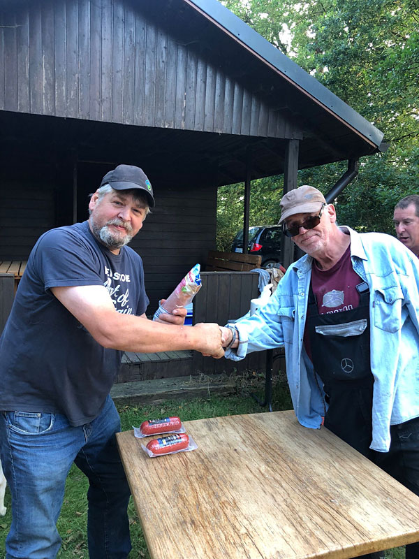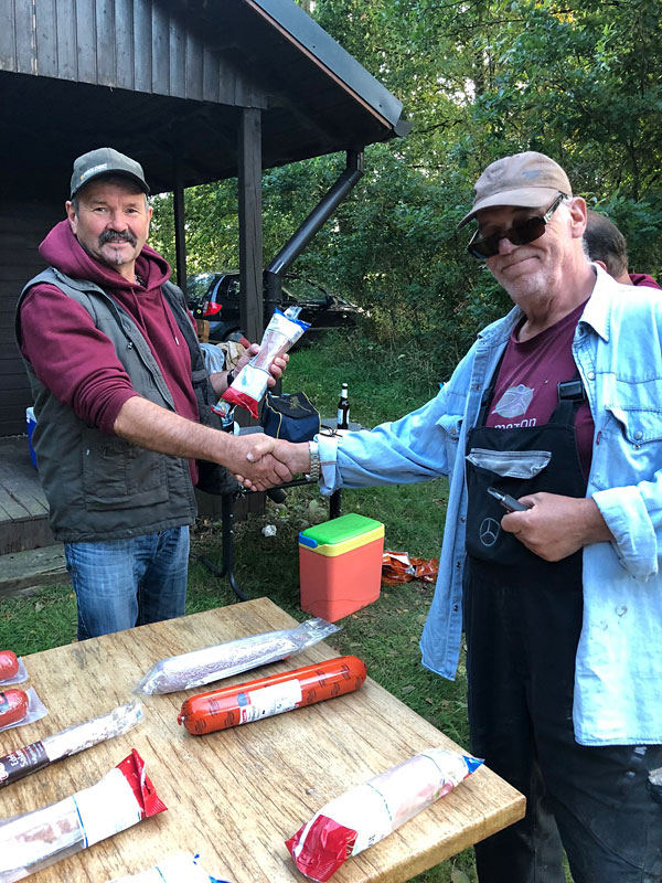 Uwe mit fetter Jagdwurst. Gibt es eigentlich auch Angelwurst?