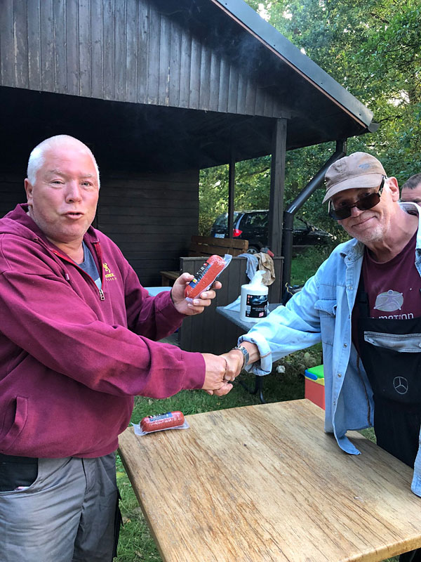 Gastgeber Andreas hat natürlich auch eine Mettwurst bekommen.