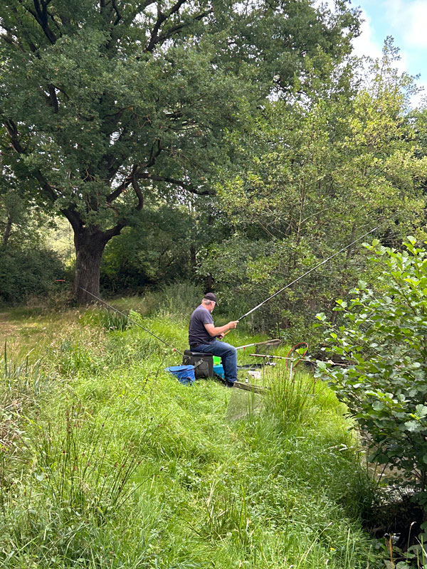 Das war Ulf egal…er wanderte auf die Waldseite. Hier, wo alles ruhig ist, muss doch mal ein großer Fisch ans Band gehen. Mini-Boilies sollten es richten…