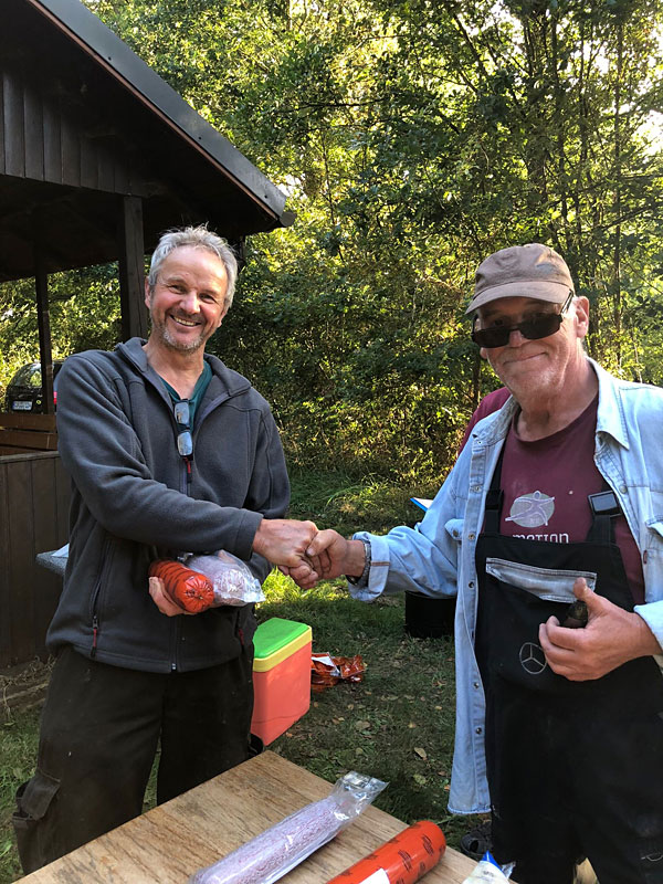 Jürgen hat sich eine Edelsalami ausgesucht.