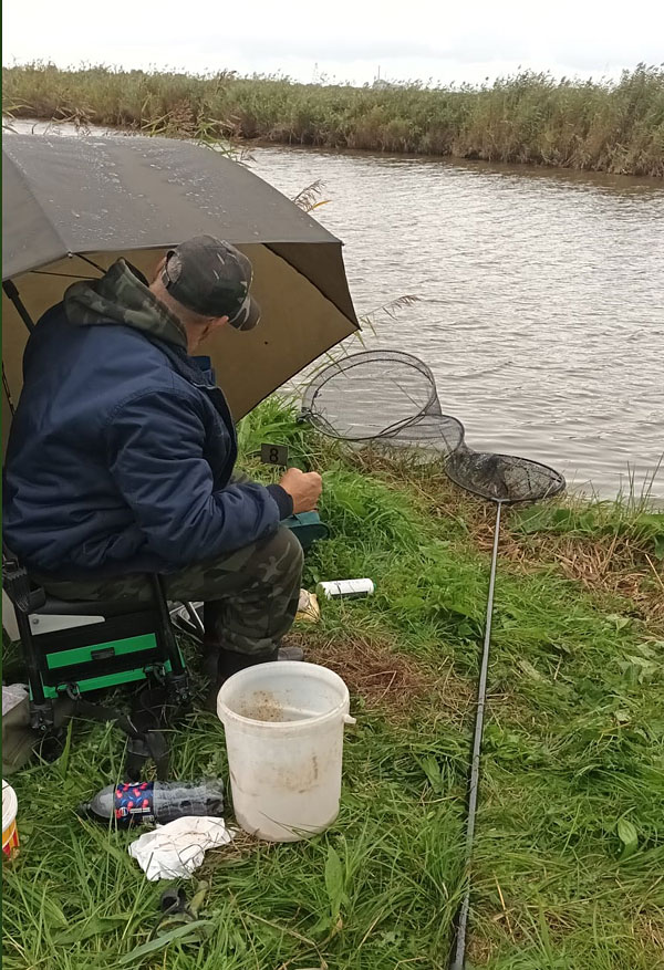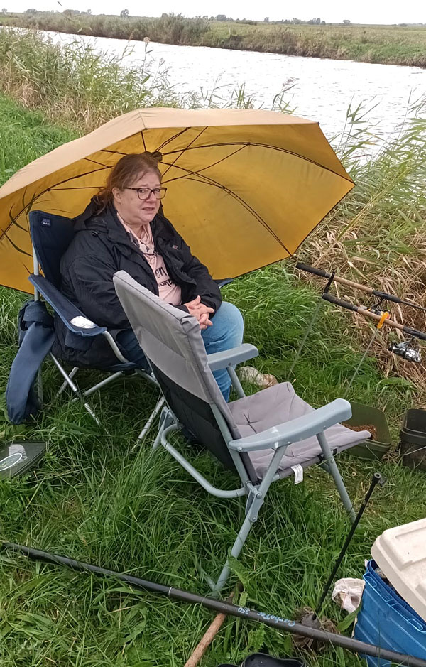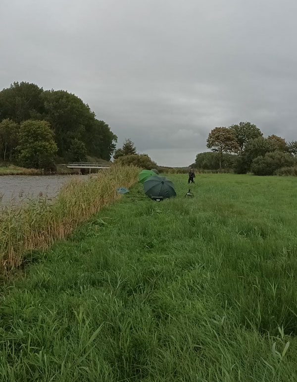Ab und zu wird immerhin mal ein Fisch gedrillt…Matze hält es sogar ohne Schirm aus - der Schilfgürtel ist ein guter Windschutz.