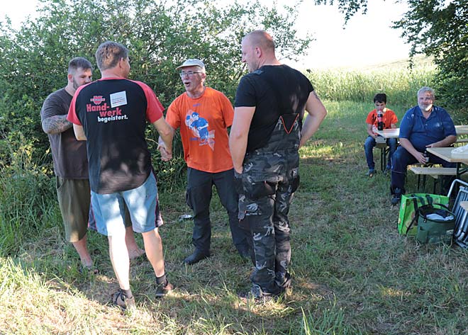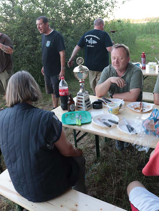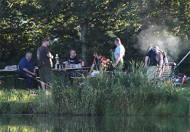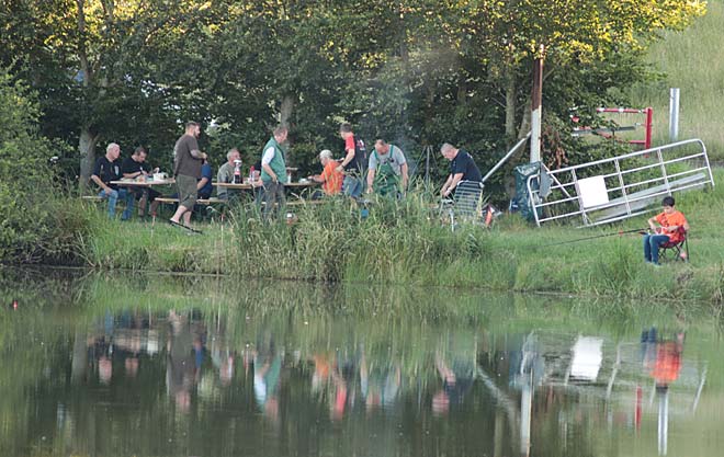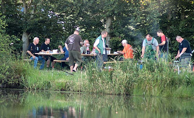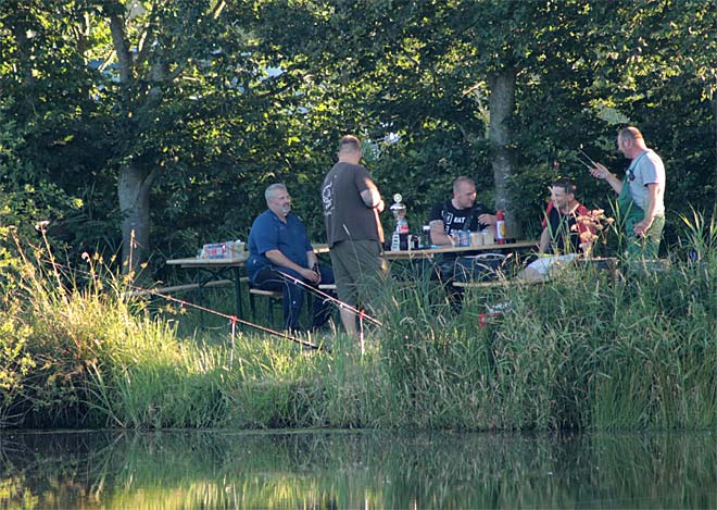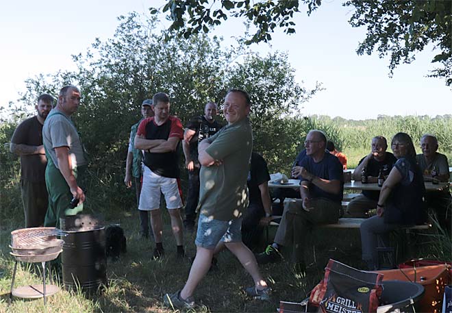 Ein herrlicher Sommertag ohne Wolken mit über 30 Grad im Schatten (wenn man ihn fand) lockte 16 Angler, davon nur 1 Jugendlicher, an den Aalteich.