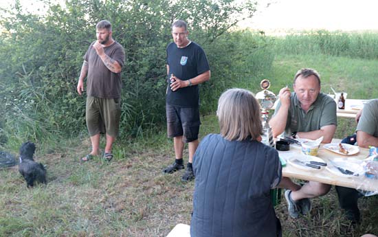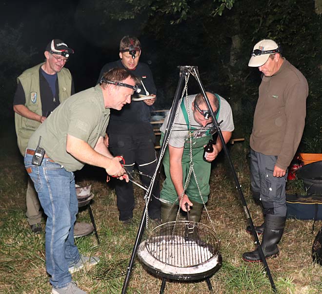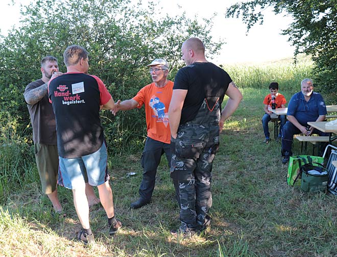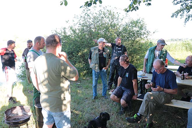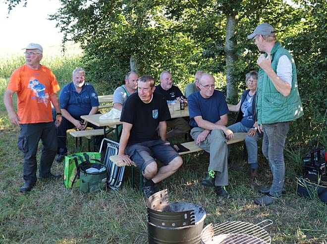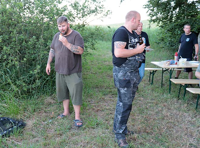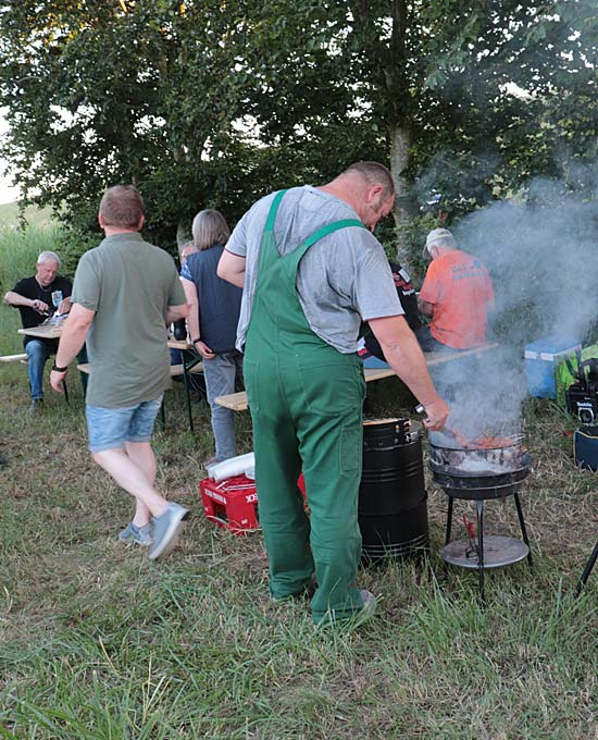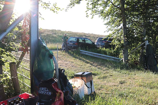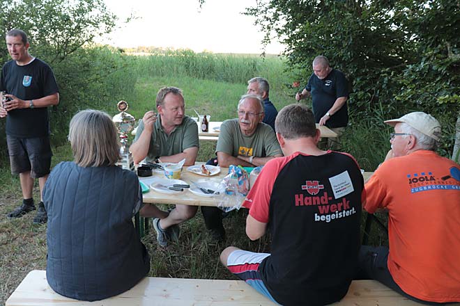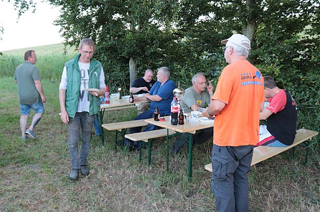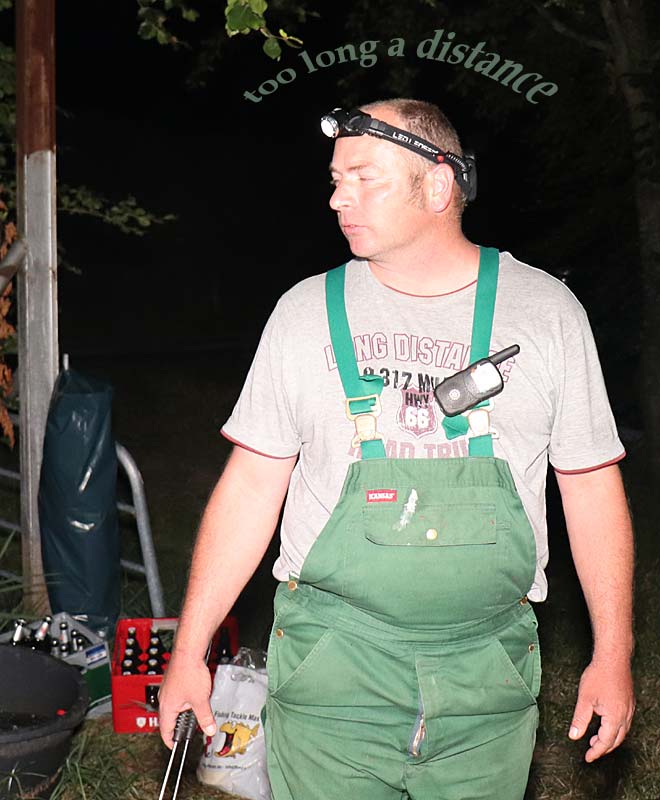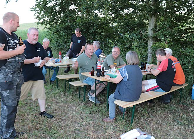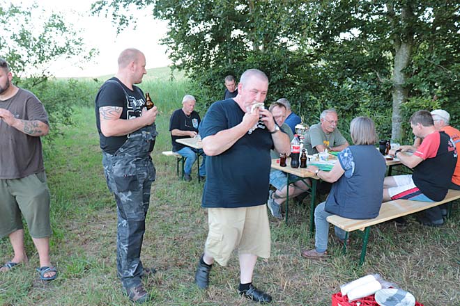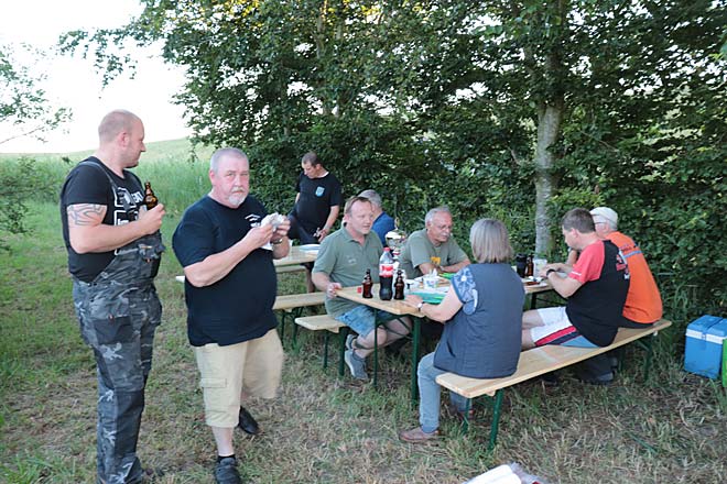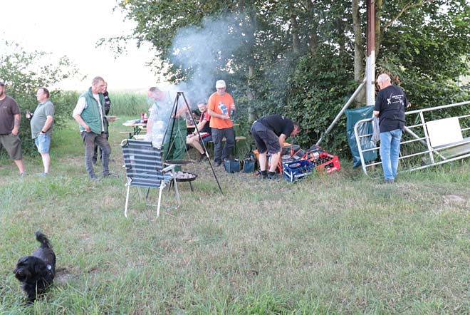 Der Stimmung tat die geringe Beteiligung keinen Abbruch. Zumindest hatten wir mehr Platz, da auf der Wiese gegenüber auch neugierige Rindviecher (nein, Maik ist nicht gemeint ;-) ihr Unwesen trieben.