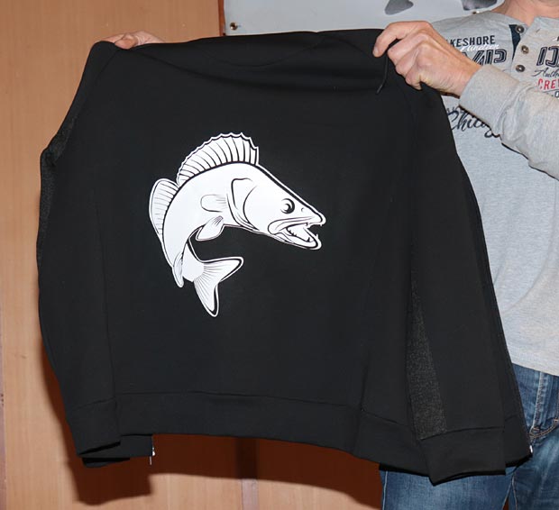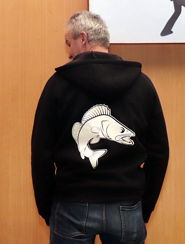 Ulf hat eine Kapuzen-Sweat-Jacke bedrucken lassen,