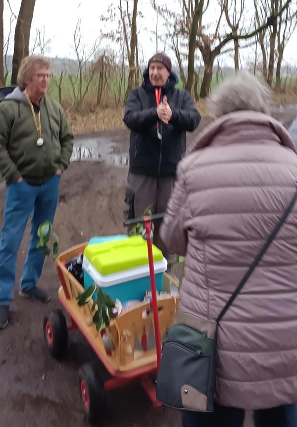 Für eine reichhaltige Getränkeauswahl hat nicht nur der Verein gesorgt. Die ein oder andere Köstlichkeit wurde durch die Teilnehmer zusätzlich auf dem Bollerwagen deponiert. Die von Gunter geforderte Ordnung auf dem Wagen haben wir schnell aufgegeben….