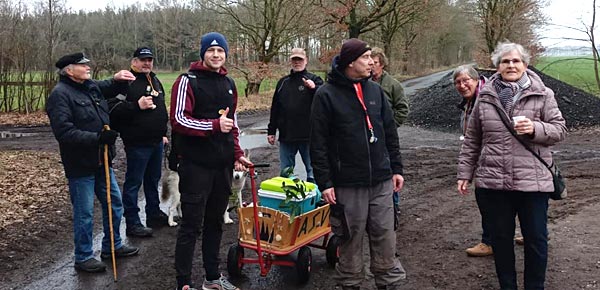 9 Wanderer, die später noch durch drei „Essen ohne Laufen“ Teilnehmer verstärkt wurden, machen sich auf den Weg.